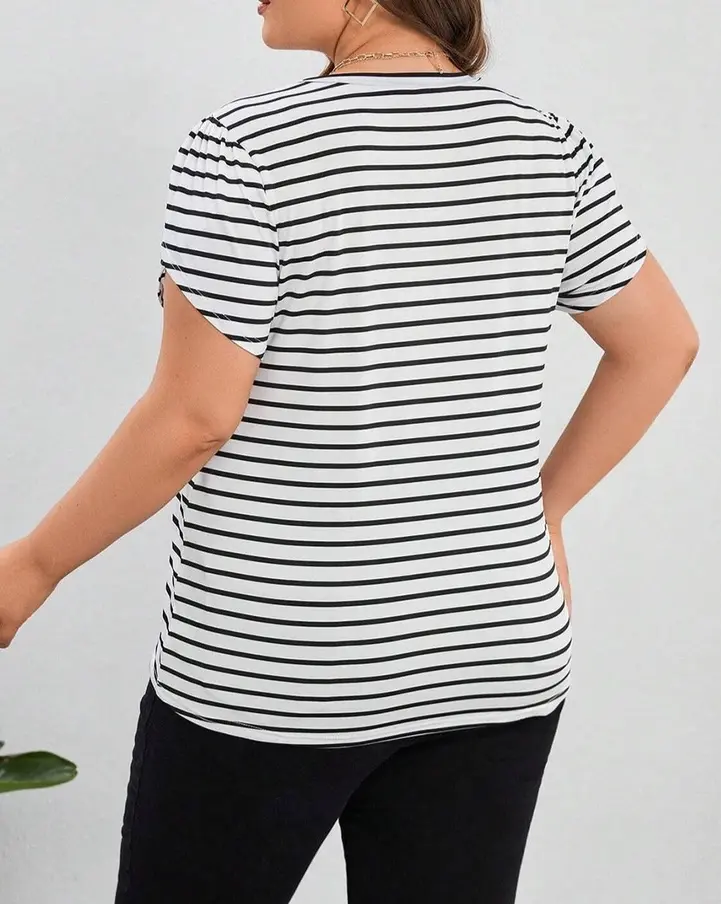 Plus Size White & Black Stripe Petal Sleeve T-Shirt